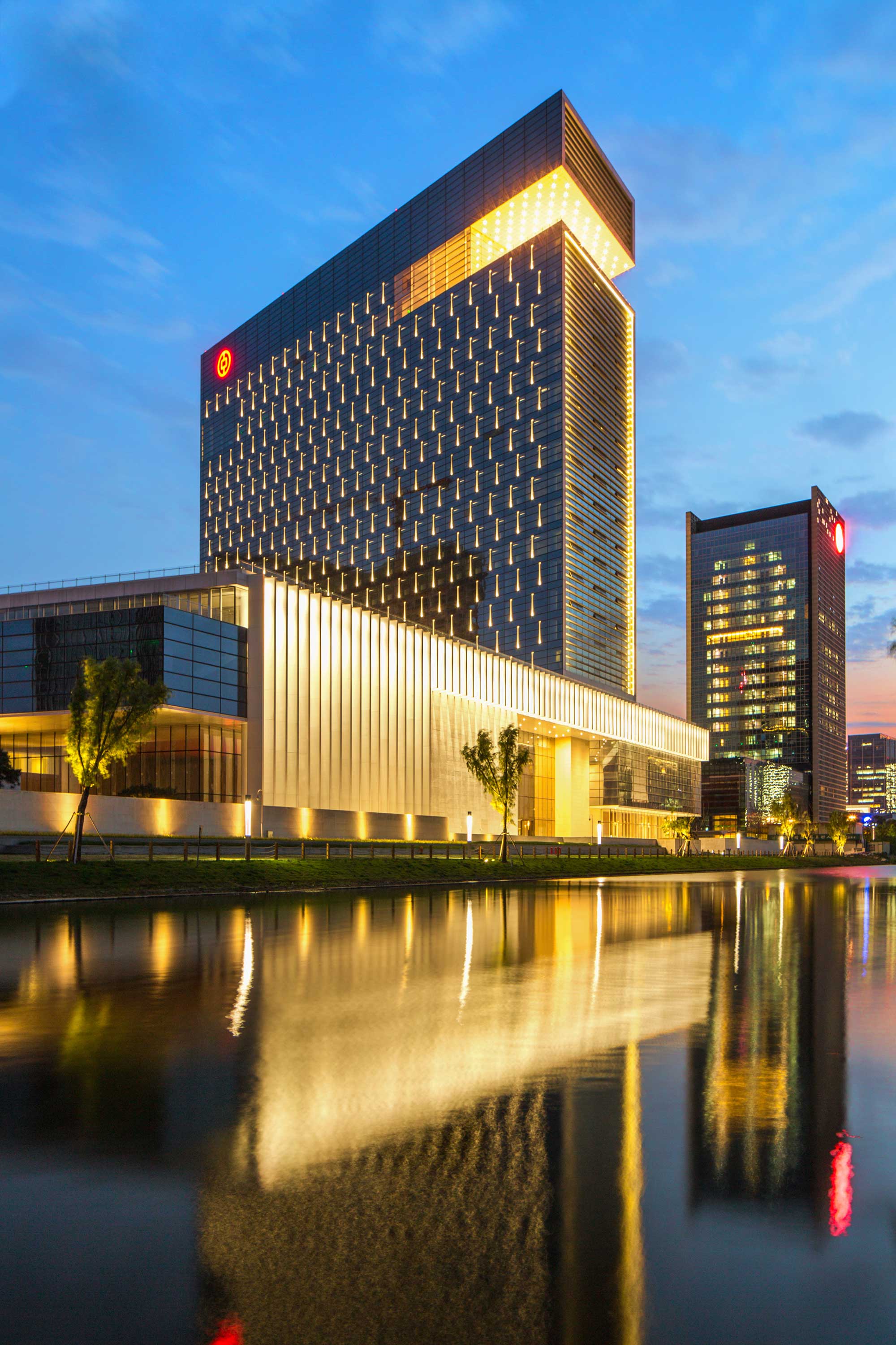 PEI 设计的灵感来自于两侧被运河环绕的场地、中远距离的视野,以及简化的形式和表面为这家中国标志性银行带来力量和尊严形象的信念。