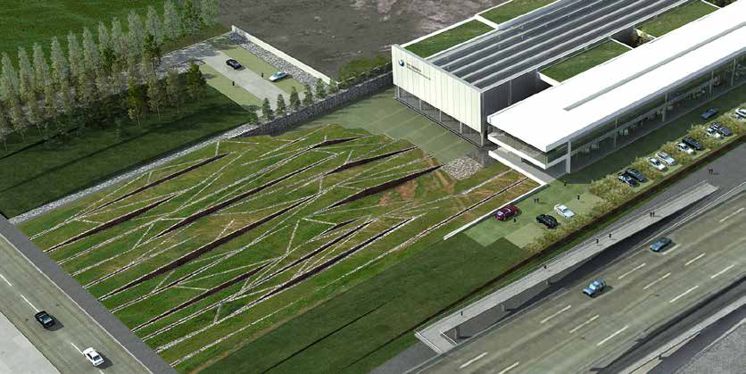 位于北京朝阳区的 BMW 展厅和服务中心占地 26,800 平方米,是中国最大的 BMW 汽车旗舰店。 它于 2012 年开业,2013 年获得 LEED 金级认证。 该建筑是中国首家获得 LEED 金牌认证的宝马新旗舰店,体现了其在宝马网络中的重要地位。