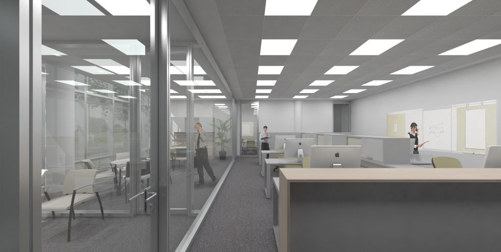 办公楼侧翼是一个玻璃和金属结构的建筑,位于大楼北端。 西立面的大型金属丝屏风可控制阳光,并为办公室提供私密性。 这座两层楼高的建筑采用开放式办公布局,私人办公室视野开阔。 两层办公楼由一个环形玻璃围墙连接,围墙内有一个环形大楼梯;两层办公楼均可直接通往酿酒厂设施楼层。
