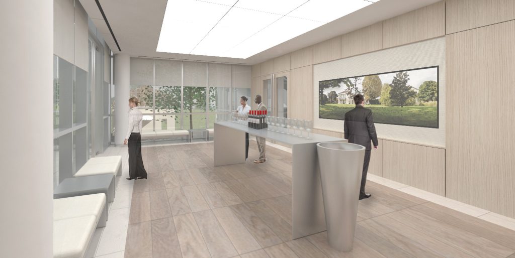 建筑群的设计还包括绿地和停车场。 该计划要求保留酒庄北面的主入口,并设计一个有序的花园,在花园中保留一棵伦敦梧桐树;在南面获得了额外的土地,从而有机会提供一个设计合理的开放空间,种植一排树木,并提供开阔的视野。 酿酒厂的室外生产活动位于建筑群的西面,停车场安排在有组织的绿地内。